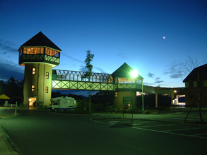 左からレストハウス、さわやかトイレ、ロマンチック街道資料館です。