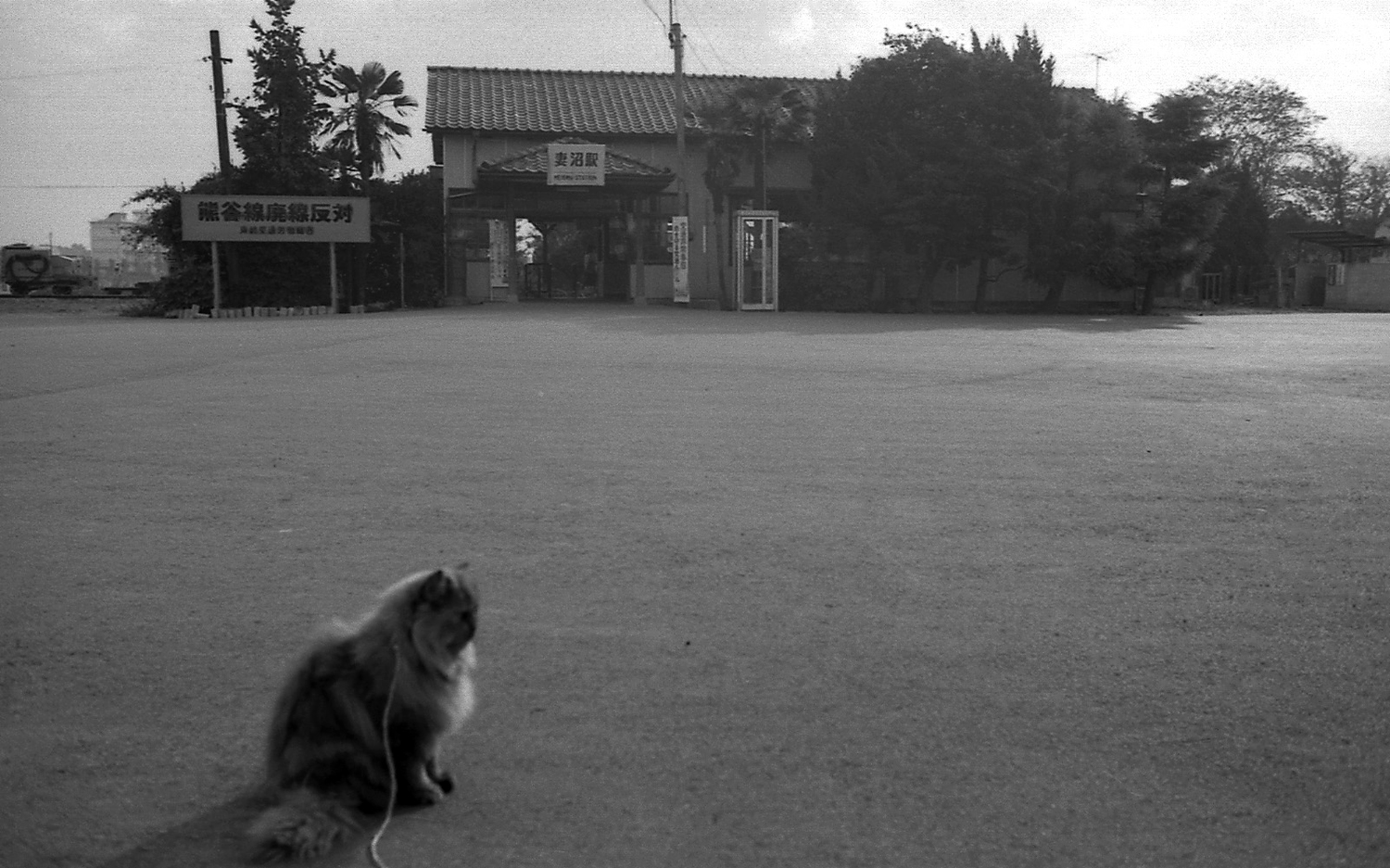 駅舎横に少数派による「熊谷線廃線反対」の看板が。