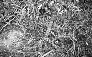 草むらに埋もれるレール。