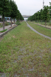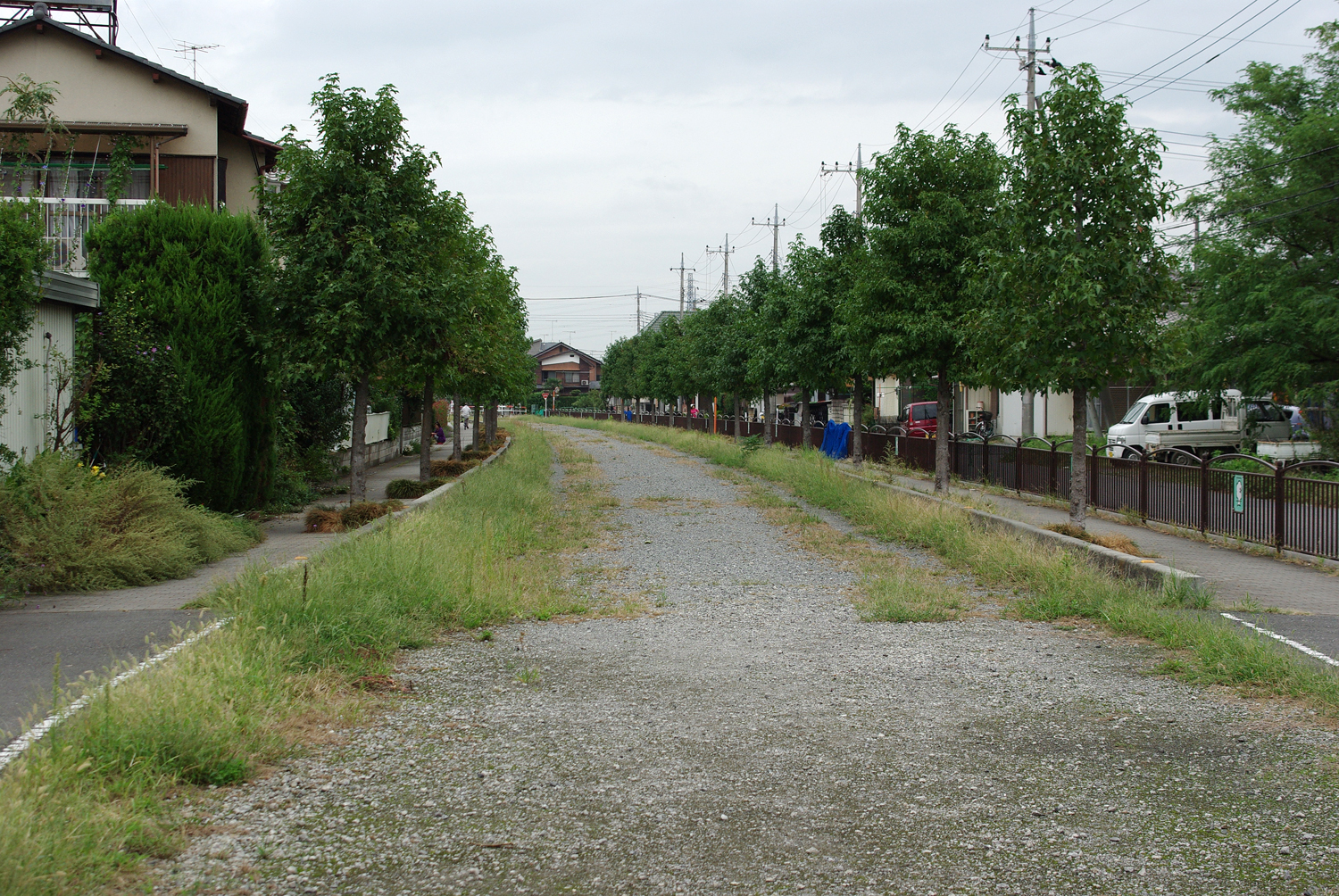 現在、熊谷線跡地は「かめのみち」と称され、住宅棟に挟まれるように公園の様な遊歩道になっています。