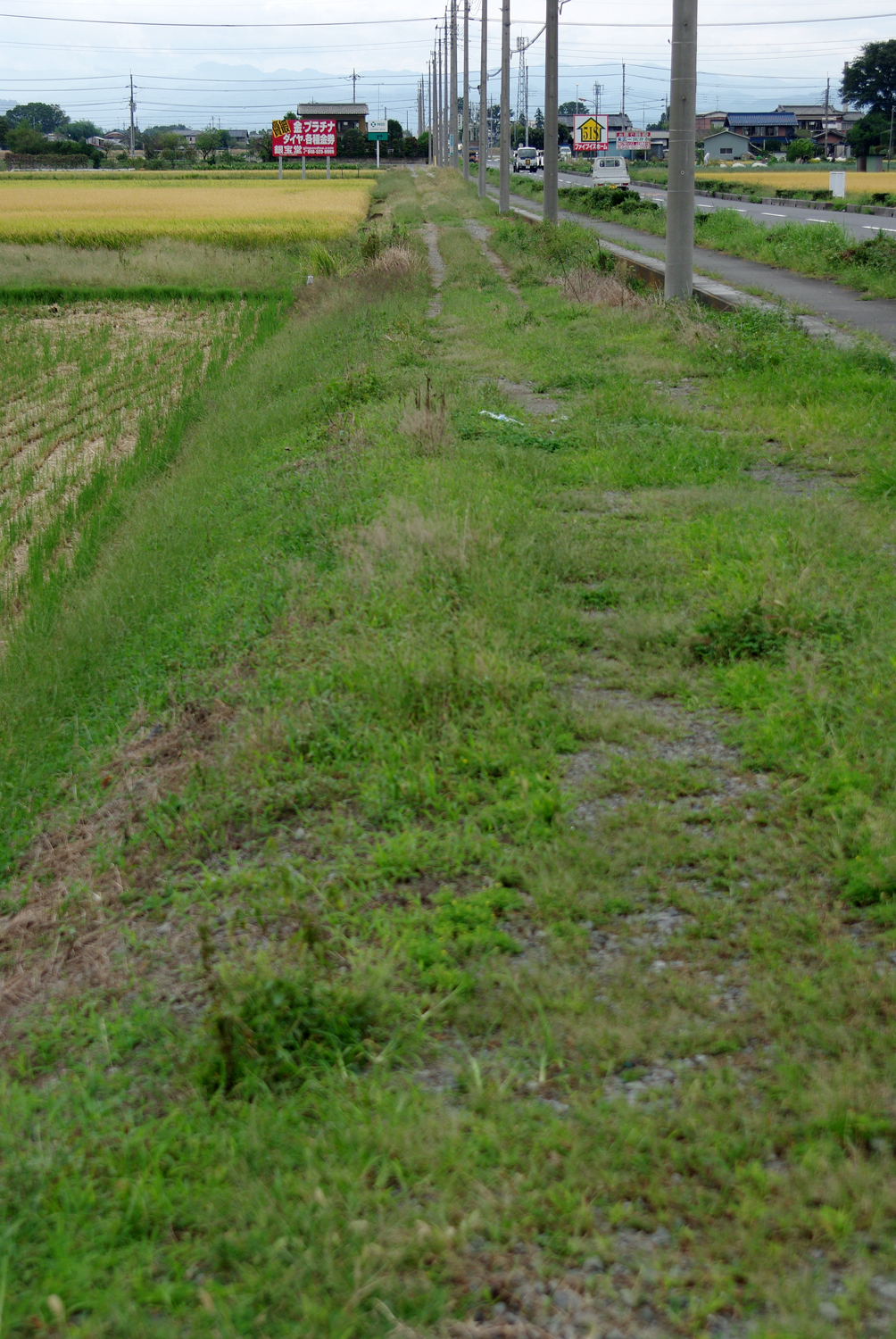 広大な畑の中を進む路線跡。今、このような場所を単行のキハが走る路線があったらマニアの注目は間違いないでしょう。