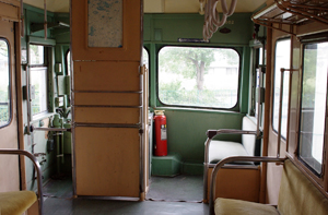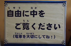 魔改造6000系車内。急行は「有料」です。