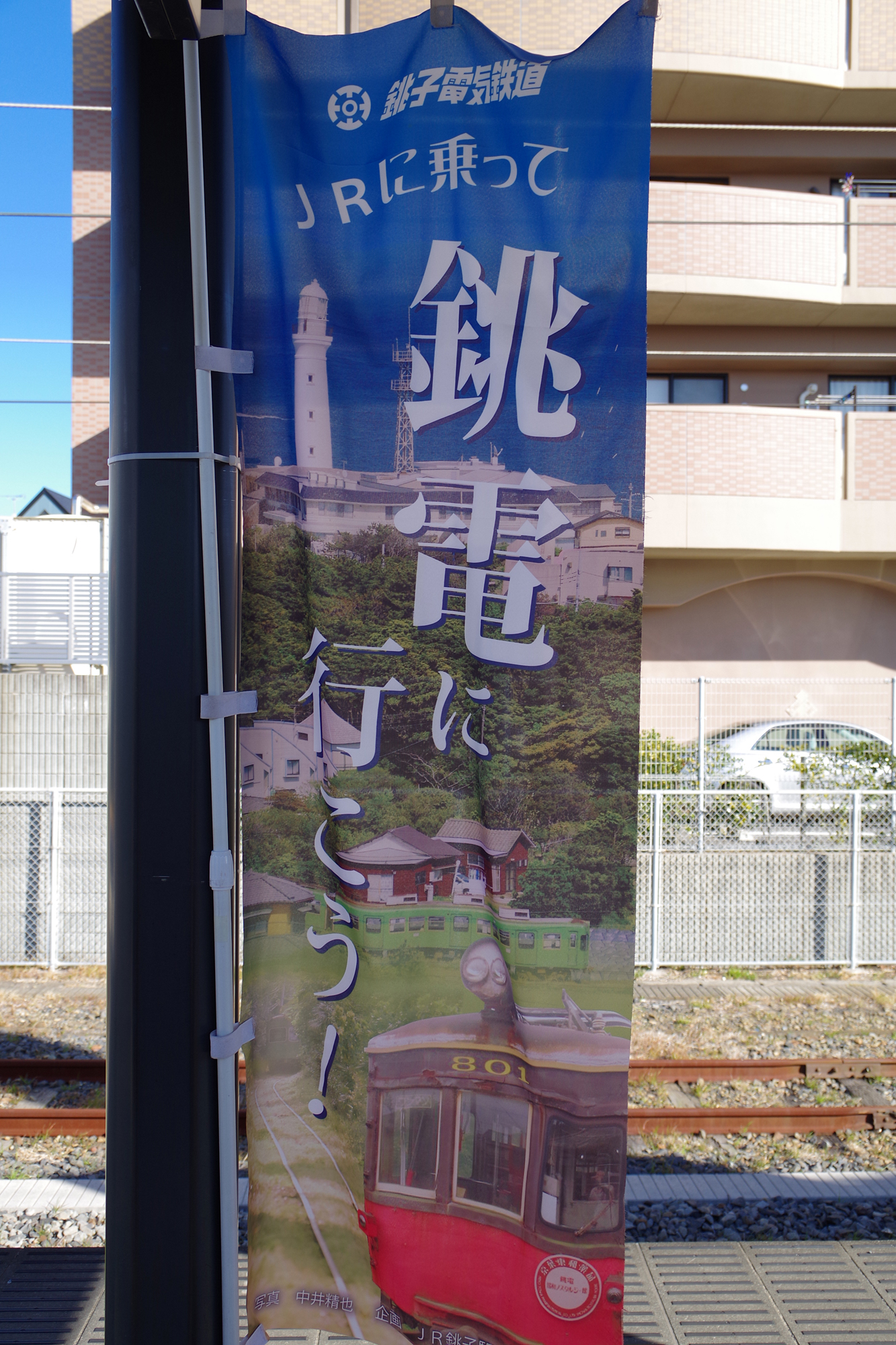 銚電乗り場にこんな幟が立ってました。