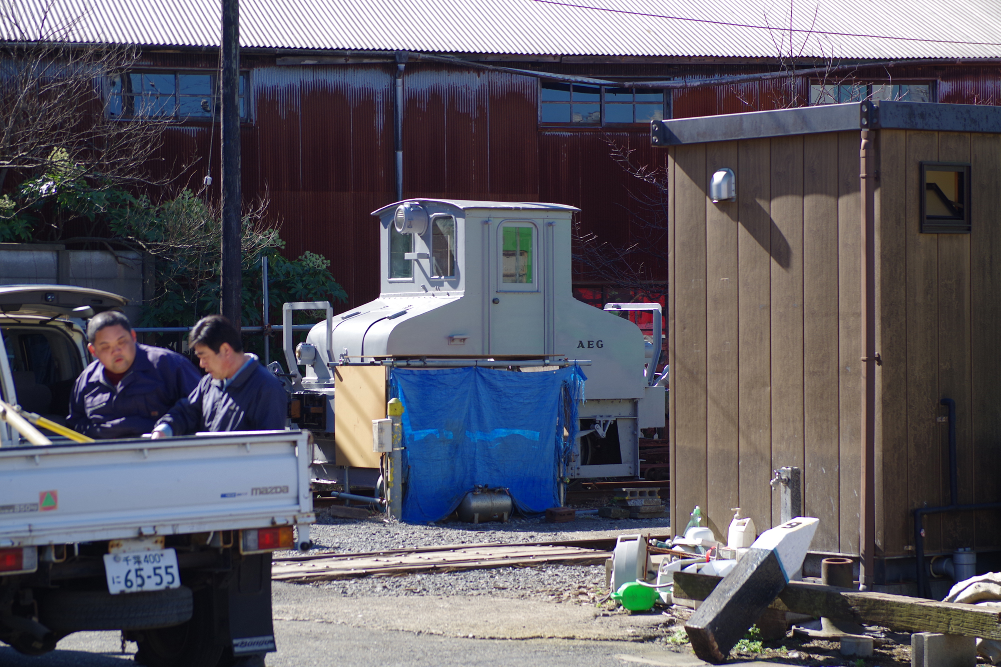 仲ノ町に到着。デキ3は塗装を剥がされて、サーフェイサー状態ですかね? 新塗装が楽しみです。