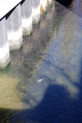 そのすぐ横の水路でボラの遡上が見られました。