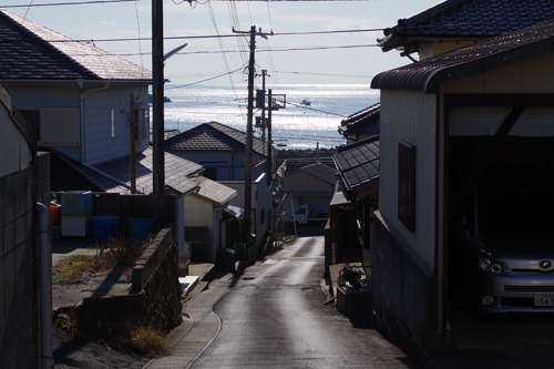 外川の街並みを見ながら坂を下ります。
