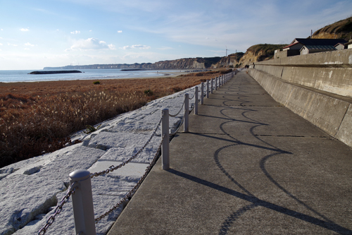 銚子マリーナを超えて屏風ヶ浦の遊歩道へ。東日本大震災で甚大な被害を受けたこの遊歩道。