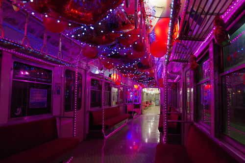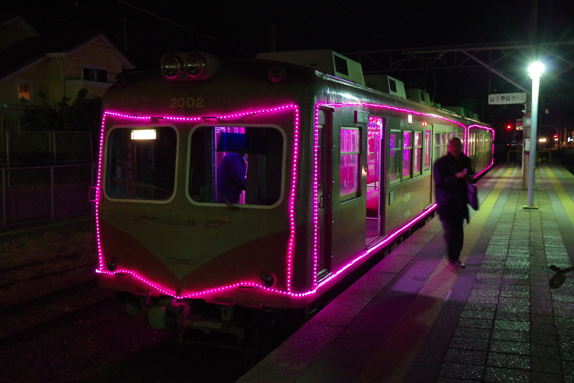 銚子行きの列車が来ました。例の電飾電車です。