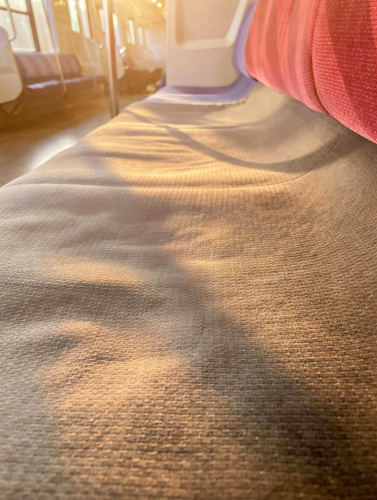 春の日差しでポカポカしている209系のロングシート