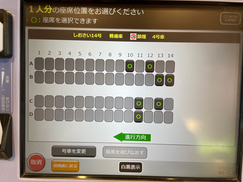 今日はしおさい号で帰ろうと座席予約端末にアクセスしてみましたが、