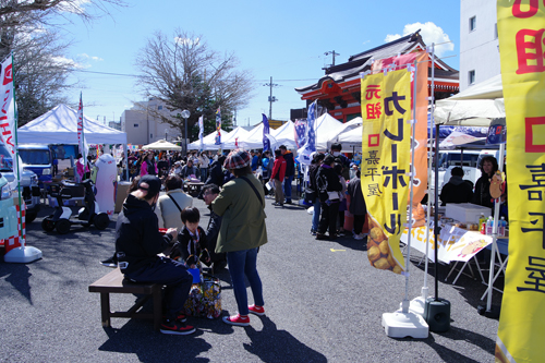 境内は露店(銚子マルシェ)でいっぱい。人も多く賑わっています。